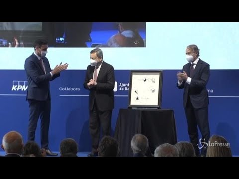 Draghi premiato a Barcellona, lungo applauso per il premier italiano