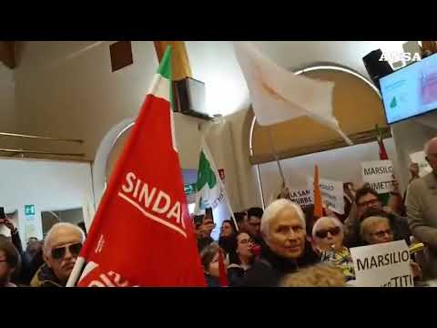 Fischi e cartelli per chiedere le dimissioni di Marsilio, poi si canta "Bella ciao"