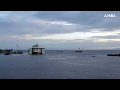 La nave lascia l’isola del Giglio in direzione Genova per la demolizione
