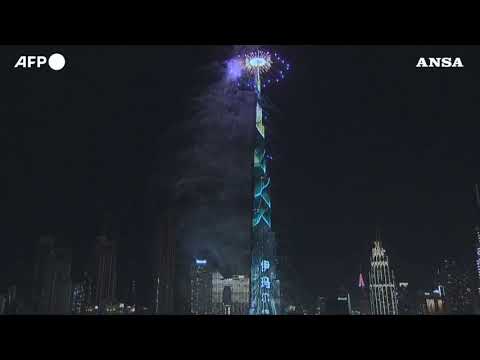 I fuochi d’artificio illuminano il Burj Khalifa, la torre piu’ alta del mondo