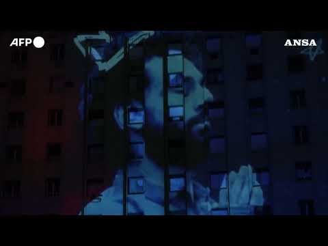 Proiettate sulle pareti le immagini del giocatore del Liverpool e stella della nazionale egiziana