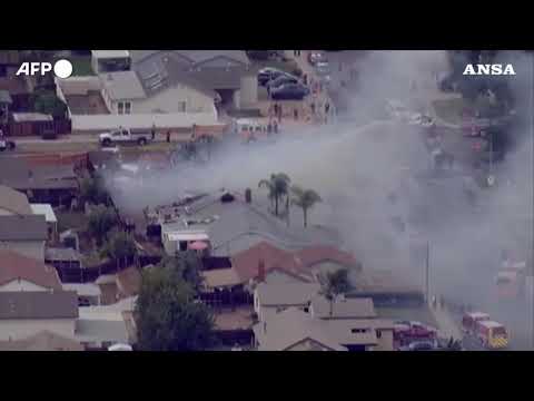 I vigili del fuoco al lavoro a Santee per domare l’incendio
