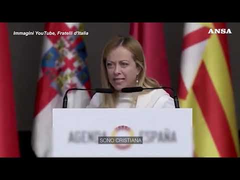 La leader di Fratelli d’Italia ospite al raduno di Vox
