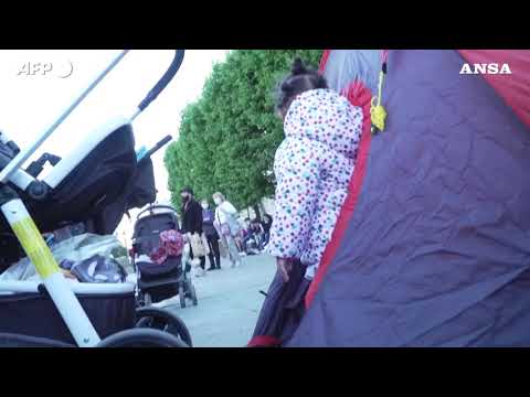 Adulti e bambini provenienti dall’Africa subsahariana passano la notte al presidio