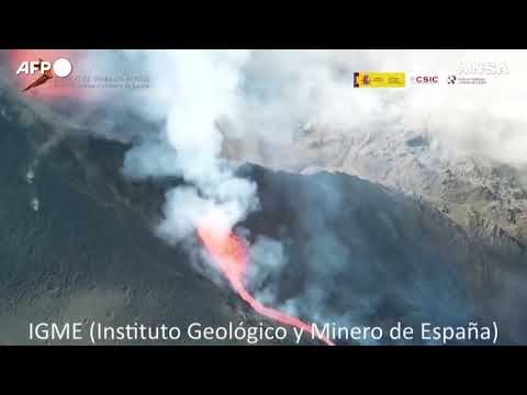 Le immagini aeree mostrano una parte del cono vulcanico crollata sul lato meridionale