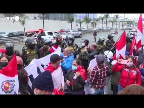 I manifestanti sotto il palazzo del Congresso mentre il neo capo di Stato prestava giuramento