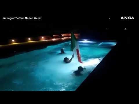 Il leader di Italia Viva si e’ lanciato in acqua con il tricolore