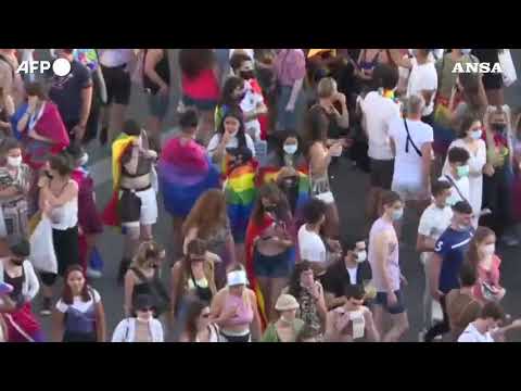 Nonostante le limitazioni Covid la citta’ e’ stata invasa dalle bandiere arcobaleno