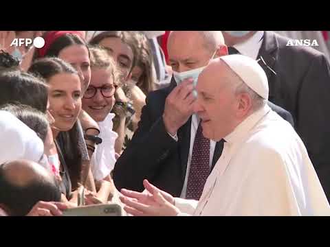 Il Santo Padre ha salutato i pellegrini prima di parlare dal cortile di San Damaso