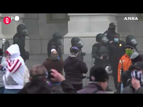 Sostenitori di Trump e agenti in tenuta antisommossa si affrontano fuori dal Campidoglio